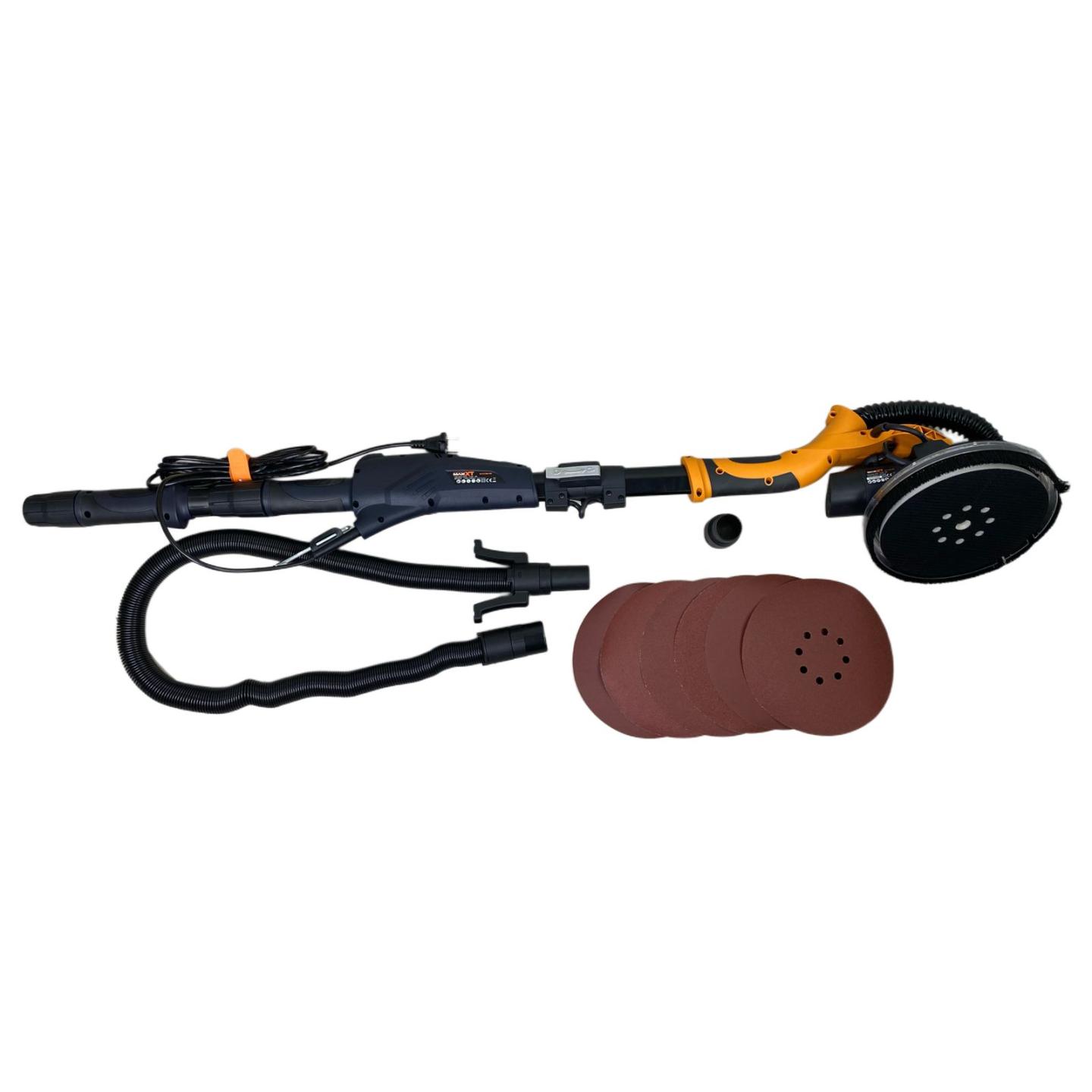 Гибкий шланг для подключения пылесоса, растягивающийся до 4 метров. Мягкий сетевой кабель длиной 4 метра. Блок с неограниченной подвижностью шлифовальной головки - позволяет выполнять шлифование под любым углом.